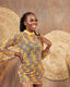 Introducing our latest design collaboration with print designer Adebusola Ekoko from Grapes Pattern Bank. Featuring a unique 'ankara print' inspired abstract shapes that tell a story. This mesh mini-dress with a striking yellow collar detail is both soft and lightweight, making it a comfortable and semi-sheer option. Available in warm earthly tones, it flatters different skin tones and celebrates all body types, as seen on our model.